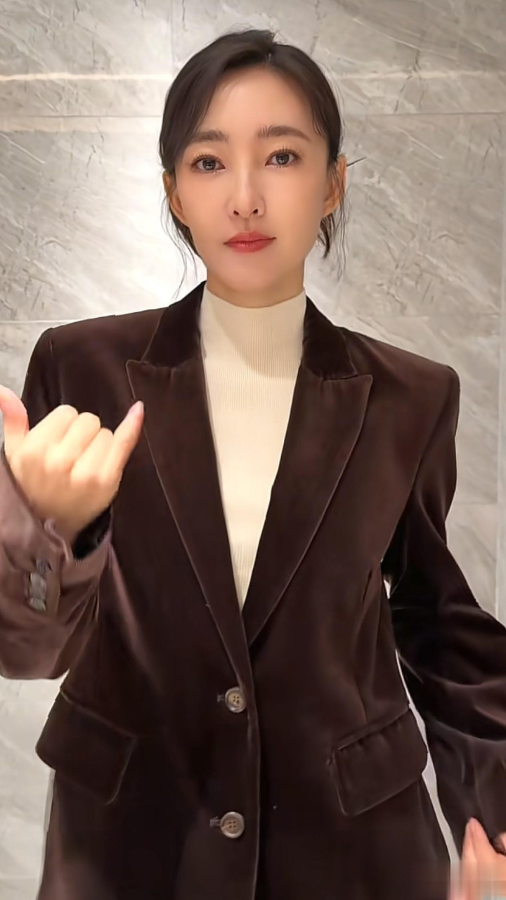40岁王丽坤手势舞穿搭: 打底衫+西装外套, 干练又优雅, 美得像28