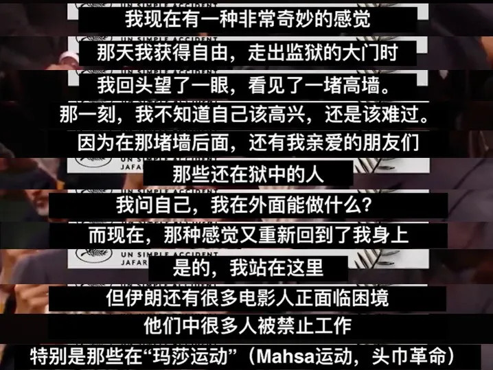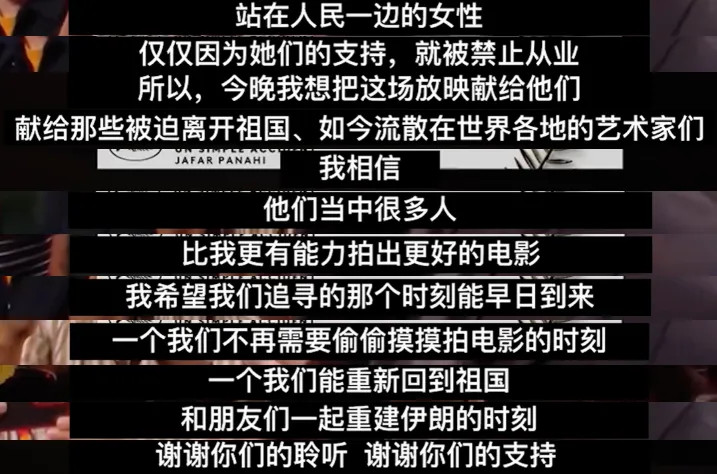 在戛纳放映后的现场,贾法的致辞也让人动容。