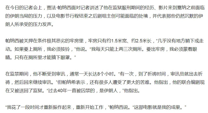 (众所周知,在伊朗拍电影的难度是地狱级的。贾法·帕纳西就数次经历被政府问责监禁,比如2010年12月20日,伊朗官方宣布,因为危害国家安全和做了不利于国家形象的宣传,贾法被判6年有期徒刑。20年内不得制作或执导任何影片,不得写剧本,不得以任何形式接受国内外媒体采访,不得离开伊朗。)