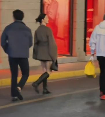 她穿着驼色风衣配长靴,光腿站在10度的寒风里,腿修长得像漫画里走出来的,身材火辣到让人挪不开眼,皮肤更是白得像反光板。
