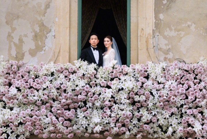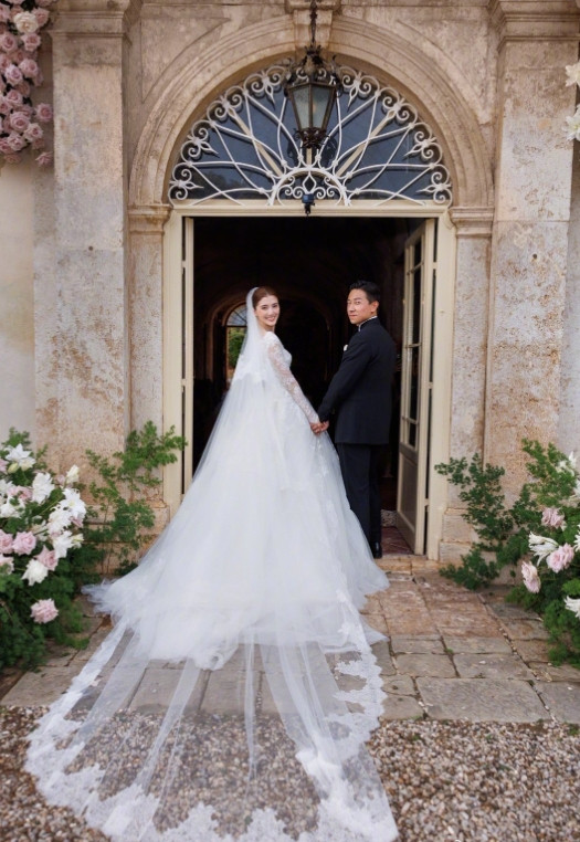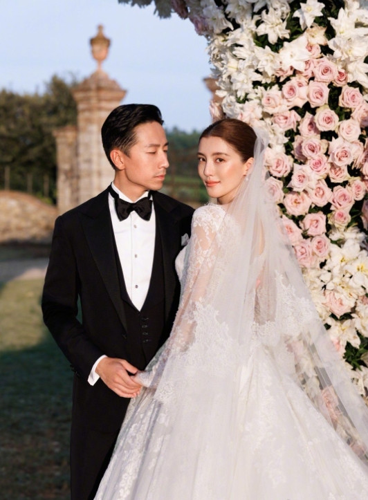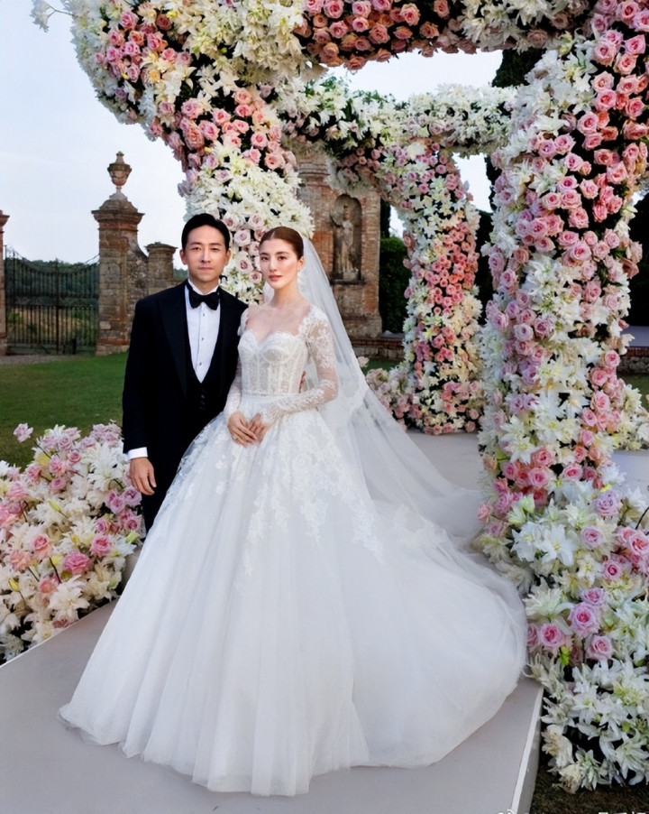 12月16日,两人在香港低调登记,2024年8月3日,意大利托斯卡纳古堡补办婚礼,玫瑰拱门下深情一吻,烟花绽放,童话故事都不敢写的这么浪漫!