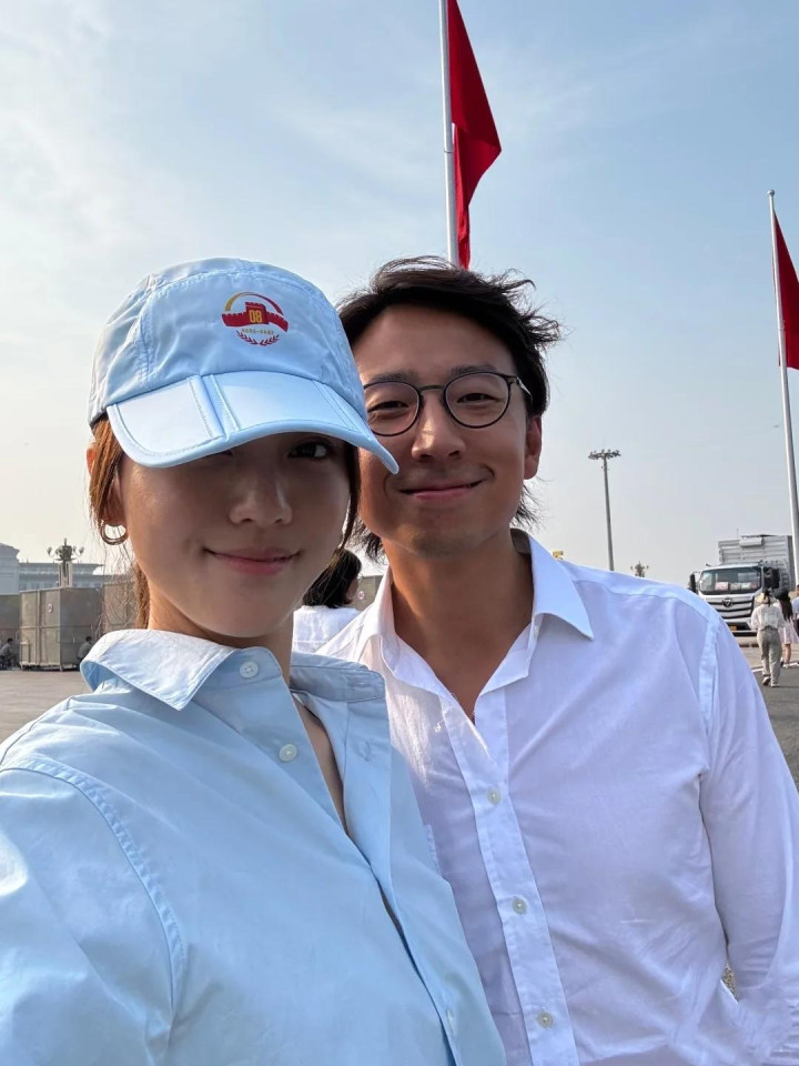 去年9月3日夫妻俩受邀去看阅兵,于北京天安门广场现场观礼,两人身着深色正装,神情庄重,观礼期间甜蜜牵手,互动自然。