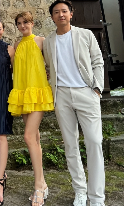 吴千语夫妻现身上海, 面相富态大长腿吸睛, 施伯雄秃头被嘲老嫂子