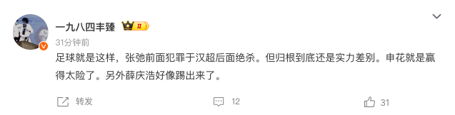 丰臻也感叹道:“足球就是这样,张弛前面在犯罪。于汉超后面绝杀。但归根到底还是实力差别。”