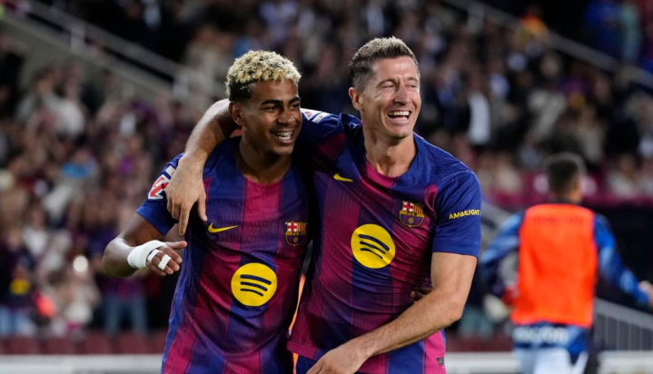第69分钟,莱万多夫斯基小角度射门被挡了出去。4分钟后,久保健英劲射击中立柱弹出底线。随后,亚马尔单刀推射破门,但因为越位被吹掉。第82分钟,孔德犯规,被出示黄牌。第85分钟,莱万多夫斯基门前包抄射门,结果皮球击中门框弹了出去。最终,巴萨2-1逆转击败皇家社会。巴萨联赛豪取4连胜,4场狂轰14球。巴萨以19分超越18分的皇马,成为新领头羊。