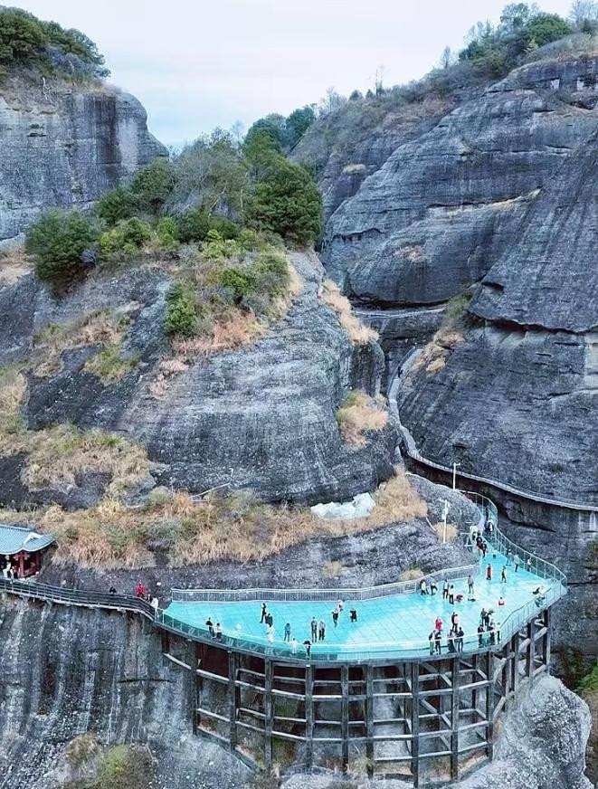 玻璃栈道:高空+透明结构,走在其上可俯瞰峡谷线条