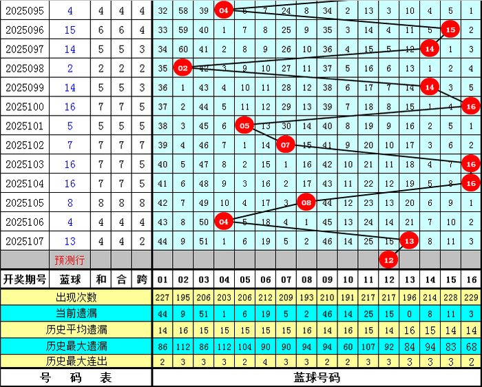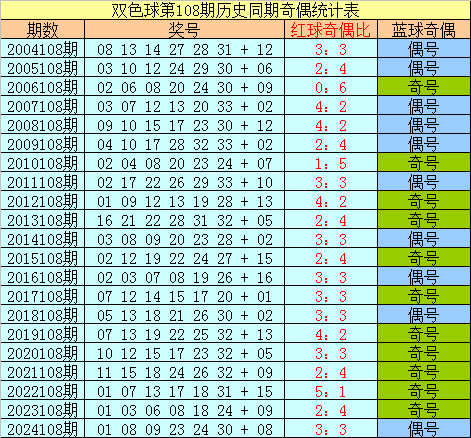 蓝球分析:在第108期历史同期开奖中,蓝球号码奇偶比为11:10,最近5年同期奇偶走势为:奇、奇、奇、奇、偶,今年同期预计再出偶数蓝球,推荐蓝球12。